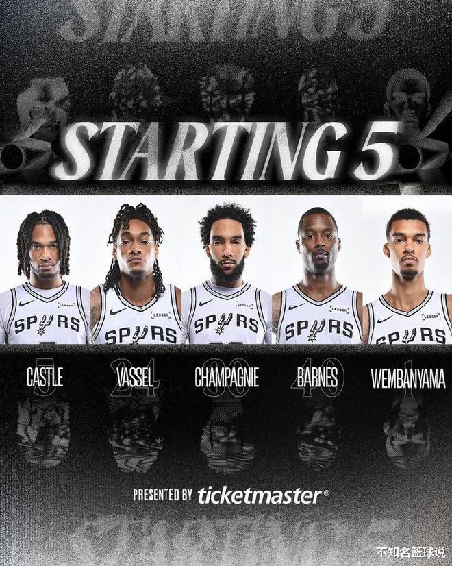 马刺:尚帕尼、巴恩斯、文班亚马、瓦塞尔、卡斯尔